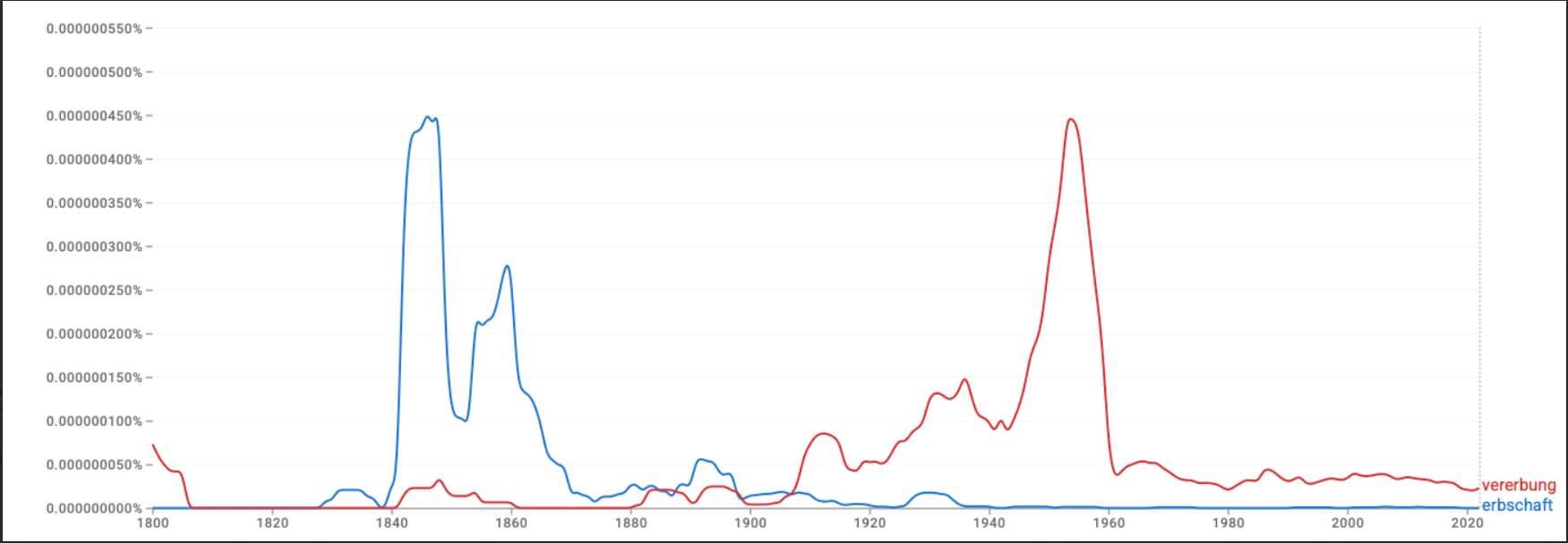 Fig. 10 - Google Ngram search for Vererbung and Erbschaft in the world's German literature
