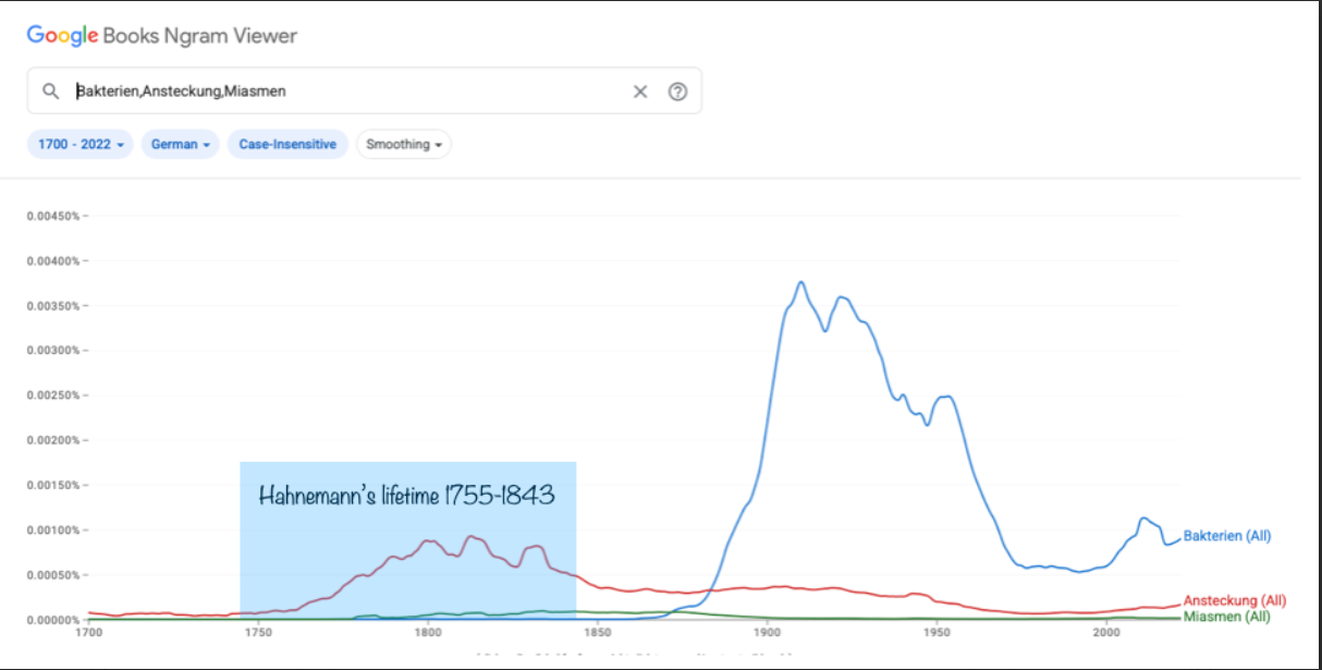 Here we see the use of the German term Miasmen (miasms) in the German literature both before and after Hahnemann’s employment of it to describe the origins of chronic disease: